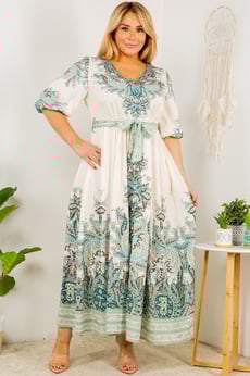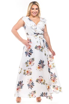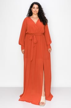 CHIFFON LONG SLEEVE MAXI DRESS - PLUS SIZE