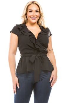 CROSSED RUFFLE SHORT SLEEVE - PLUS SIZE