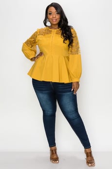 LACE LONG SLEEVE TOP - PLUS SIZE