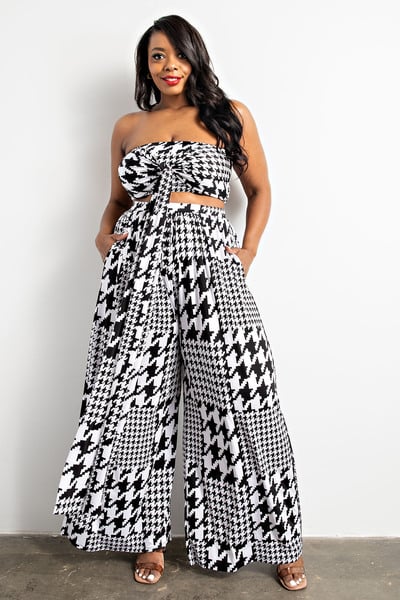 MULTI TIE TUBE TOP AND WIDE PANT SET - PLUS SIZE